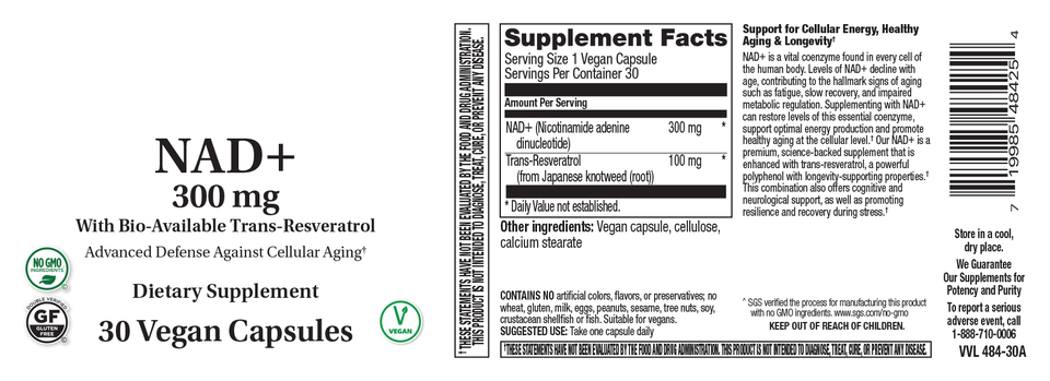 NAD+ 300 mg with Bio-Available Trans-Resveratrol (Item #484)