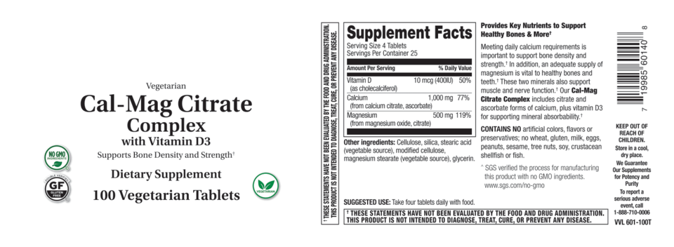 Cal-Mag Citrate Complex + Vitamin D3 (Item #601)